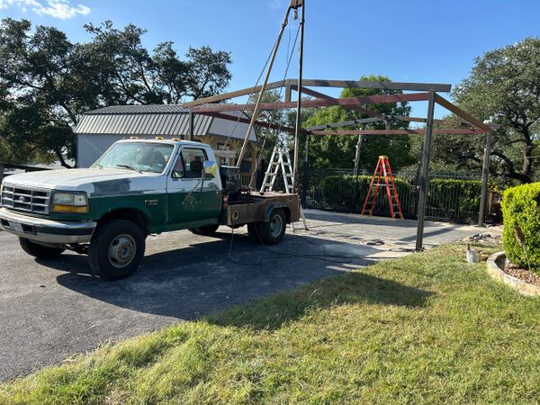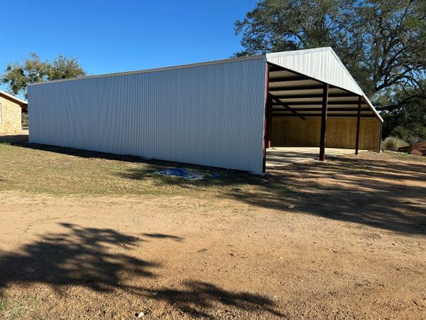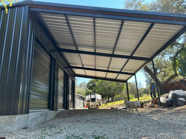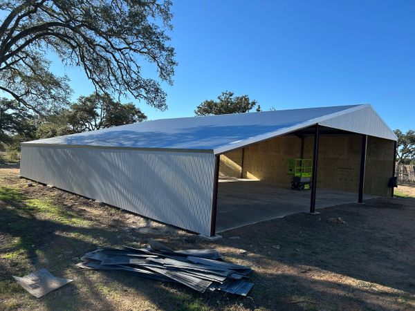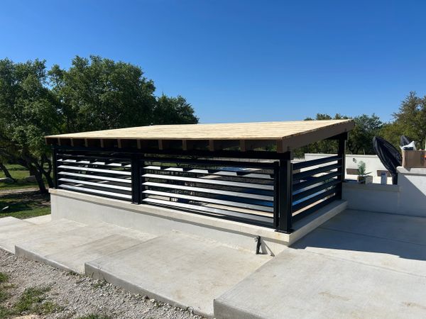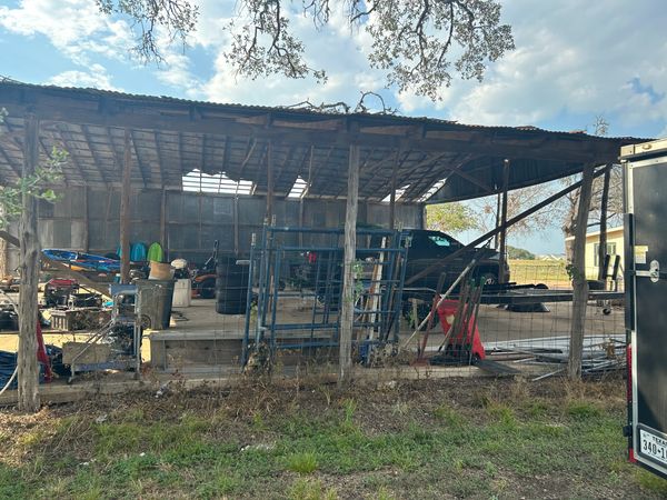 Livestock cover we built in Nixon Texas. Left some room around the bottom for airflow. Nice place for your animals to cool off in the summertime or stay warm in the winter.